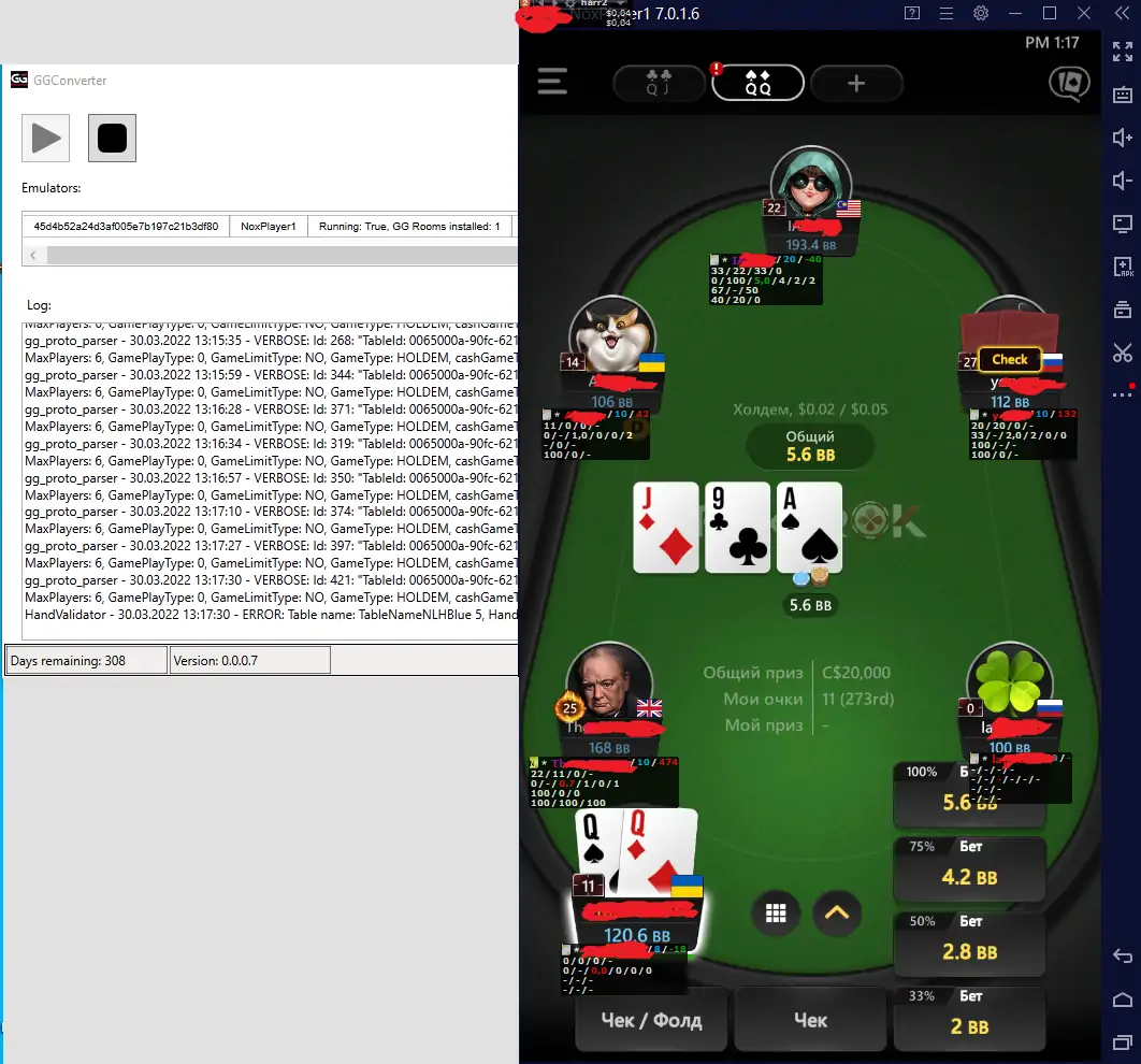 KingsHands GGКонвертер импортирует историю рук из сети Good Game в покерные трекеры и выводит HUD во время игровой сессии. Конвертер работает на основе мобильных приложений: для его использования нужен эмулятор Android.
